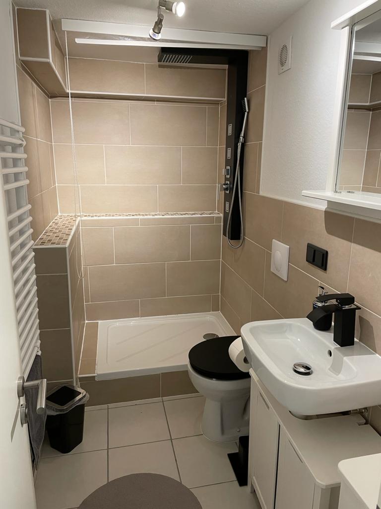 Die Regendusche ist aufgrund der Souterrainlage nur ca 1,90m hoch!